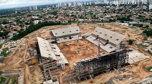 A Arena Pantanal chegou a 62% de suas obras concluídas, segundo a Secopa-MT. Os operários trabalham na reta final da montagem
